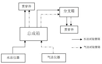 集中區(qū)域內(nèi)的貫穿件試驗實施前,連接加壓管線時,可直接將加壓管線攜帶至分支箱放置處,用快速接頭連接分支箱與貫穿件加壓口,保持分支箱控制閥為開,利用總成箱控制閥作為充卸壓控制閥進行試驗。