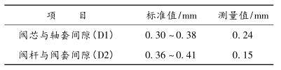 1)由上表可以看出,閥芯與閥套間隙(D1)、閥桿與閥套間隙(D2)明顯小于標(biāo)準(zhǔn)值,導(dǎo)致運行時出現(xiàn)局部卡澀現(xiàn)象。