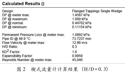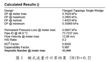 (4)根據(jù)工藝要求及現(xiàn)場安裝環(huán)境選擇耐壓、耐溫等級、防護等級、防爆等級、輸出信號等。3測量熱解氣的渦街流量計的選型設計熱解氣的組分如表1所述,其工藝參數(shù):操作密度0.63kg/m3,運動粘度2×10-5m2/s,操作溫度48.9℃,操作壓力7.5kPa,管道DN80,*小流量50Nm3/h,正常流量100Nm3/h,*大流量150Nm3/h,儀表測量范圍選擇0~180Nm3/h。因為本裝置為試驗裝置,在裝置運行的過程中,業(yè)主可能會根據(jù)需要適當調整參數(shù),因此選擇量程比寬一些的流量計會有助于調整后的測量;另外熱解氣作為產(chǎn)品之一,其流量是驗證工藝與關鍵設備的工程可行性、優(yōu)化工藝參數(shù)的關鍵參數(shù)之一,因此使用精度高一些的流量計也是有必要的;熱解氣的組分隨著參數(shù)的調整也可能會發(fā)生變化,因此基于伯努利方程原理的,如孔板、噴嘴、阿牛巴、德爾塔巴、平衡式等都不能很好的測量,因為這類流量計受流體物性(密度、粘度)和組分變化影響,且*終的熱解氣產(chǎn)品或多或少都有焦油的存在,時間長了可能堵塞流量計。楔式流量計帶自清潔的功能,如果采用法蘭取壓,變送器采用隔膜密封式變送器,其受焦油的影響較小,楔式流量計的計算結果分別見圖1和圖2。