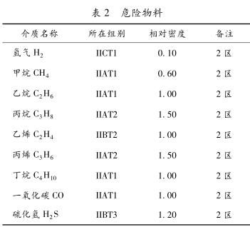 操作溫度為48.9℃,沒有特殊性,選擇普通的渦街流量計即可;根據(jù)現(xiàn)場情況,流量計為露天安裝,防護等級選擇IP65即可;根據(jù)《爆炸危險環(huán)境電力裝置設計規(guī)范》GB50058-2014,本裝置中各介質所在組別屬于危險物料,見表2。因此儀表的防爆標志選擇ExiaⅡCT4Gb即能滿足要求。根據(jù)項目統(tǒng)一要求輸出信號選擇為4~20mA+HART。