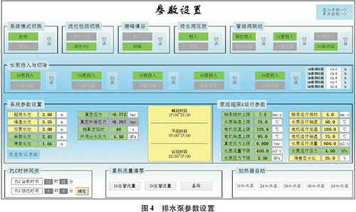在 PLC 程序里設(shè)定水泵開動臺時累計(jì)功能、移峰填谷、效率優(yōu)先等子程序,通過子程序來控制排水泵運(yùn)行,從而實(shí)現(xiàn)降本增效、節(jié)能降耗。見圖 4。