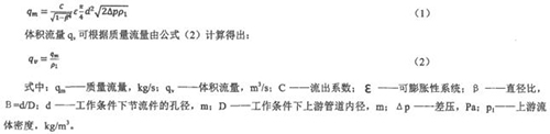 差壓式流量計是一種應(yīng)用廣泛,用量好多的傳統(tǒng)流量計。差壓式流量計(孔板)的工作原理如下:孔板安裝在充滿流體的管線中,孔板的存在使孔板上游側(cè)與下游側(cè)之間產(chǎn)生一個靜壓差,流量越大,差壓越大,因此可以利用差壓變送器檢測差壓的大小來衡量流量的大小。這種測量方法是以流動連續(xù)性方程(質(zhì)量守恒定律)和伯努利方程(能量守恒定律)為基礎(chǔ)的。差壓的大小不僅與流量還與其他許多因素有關(guān),如節(jié)流裝置形式,管道內(nèi)流體的物理性質(zhì)(密度,粘度)及流動狀況等。質(zhì)量流量qm可根據(jù)公式(1)確定: