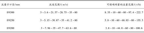 計算得到 DN200 ~ DN300 口徑的蒸汽流量計可保證精度的流量范圍,流速與流量的對應(yīng)關(guān)系如表 5 所示。