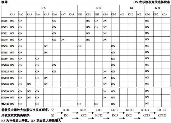(4)標(biāo)況流量計算公式,單位 t/h:四、AMPKP09A01 放大板波段開關(guān)調(diào)整參照表五、AMPSW10A01 放大板波段開關(guān)調(diào)整參照表RG=1-F 調(diào)放大器增益,由 1 至 F 依次增大(常用 4-8);RS=1-F 調(diào)觸發(fā)靈敏度,由 1 至 F 依次提高(常用 4-8)不同口徑和介質(zhì)開關(guān)選擇參見附表。并根據(jù)實(shí)際信號先調(diào)整 K2 和 K3 擴(kuò)展頻帶,必要時調(diào)整 K1 電荷放大器增益以上表值僅供參考,實(shí)際使用中因液體粘度和氣體密度不同應(yīng)在此值附近調(diào)整,頻率低時可將 K3 向大口徑方向調(diào)一至三檔。頻率高時可將 K2 向小口徑方向調(diào)一至三檔。訂貨須知及選型樣譜一.尊敬的用戶,當(dāng)您要選用本公司產(chǎn)品時,請仔細(xì)閱讀選型樣本,并做好以下工作:1.認(rèn)真核對被測介質(zhì)的工況條件:溫度、壓力、管徑等工藝參數(shù)。2.認(rèn)真核對被測介質(zhì)的使用流量范圍,特別是*小流量值以*終確定使用儀表的口徑及配管參數(shù)。3.確定儀表的安裝地點(diǎn),保證直管段,并為儀表的安裝維護(hù)創(chuàng)造好的環(huán)境條件。4.填好訂貨咨詢單,見附表三二.渦街流量儀表選型表(符合 JB/T9294-1999 標(biāo)準(zhǔn))1.傳感器選型表