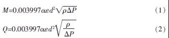 式中:M——質(zhì)量流量,kg/h;Q——工況條件下的體積流量,m3/h;α——流量系數(shù);ε——流速膨脹系數(shù);ΔP——差壓,Pa;ρ——工況條件下,被測流體的密度,kg/m3;d——工況條件下的節(jié)流件開孔直徑,mm。