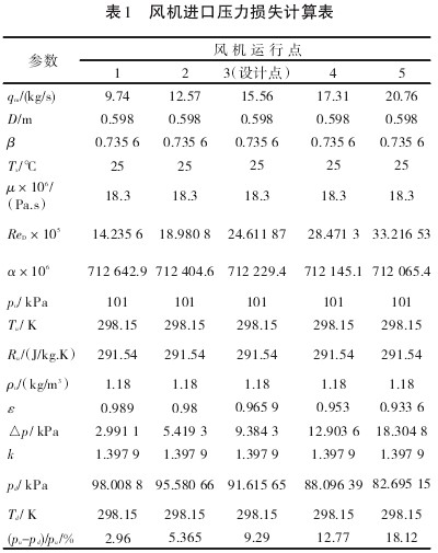 根據(jù)風(fēng)機運行點參數(shù),可計算出進(jìn)口管路中配置的孔板所導(dǎo)致的風(fēng)機進(jìn)口壓力相對損失(pu-pd)/pu,見表1。