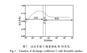 流出系數(shù)主要受孔板結(jié)構(gòu)即孔徑比β和雷諾數(shù)影響。對(duì)于特定流量計(jì)β基本不變??装辶髁坑?jì)流出系數(shù)與雷諾數(shù)的關(guān)系如圖1所示。