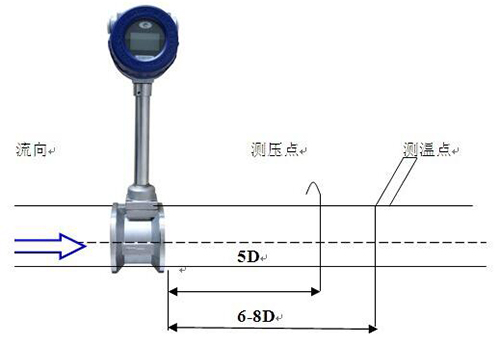 傳感器對安裝點(diǎn)的上下游直管段有一定要求,否則會影響測量精度。