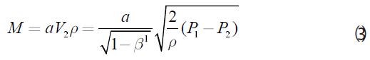 由于管道內(nèi)部流動液體為不可壓縮液體,因此其p1=p2=p,根據(jù)流體定義確定質(zhì)量流量與差壓的關(guān)系是為: